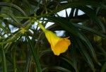 | Description: | Shrub or small tree. Leaves evergreen, glossy, linear, ± sessile, dark green; secondary veins obscure; margin revolute. Flowers 5-7.5 cm long, usually yellow, sometimes apricot, orange or white (cv. 'alba'). Fruit c. 2.5 cm across, becoming black when ripe. Similar to Cascabela thevetioides; see that species for the differences. |