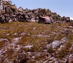 The Chimanimani Mountains are an important 'island' of the 'Afromontane archipelago', the chain of mountain groups stretching from the Cape to the high mountains of East Africa. Their peaks rise to about 2,440 m on the border between Zimbabwe and Mozambique. The area, which in Zimbabwe includes the Chimanimani National Park, is of outstanding botanical and ecological interest. The mountains are formed by alternating strata of schists and quartzites. The schist soils bear a flora allied to that of the upland eastern districts generally but the quartzites, and the soils derived from quartzite, bear a very distinct flora including, at the latest estimate, over 80 species which are endemic to the Chimanimani Mountains. These include Protea enervis, Platycaulos quartziticola, Helichrysum africanum, Aeschynomene chimanimaniensis, Disa chimanimaniensis etc. So far it would appear that all the endemic species are restricted to the quartzite areas. These are the only Central African mountains that have a developed ericaceous scrub zone.