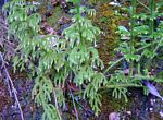 Main stem creeping on the ground for most of its length, rooting at points of contact with the ground; secondary stems erect, much-branched; tree-like. Foliage leaves needle-like, 3 × 0.3 mm, entire, patent and curving forward. Fertile portions borne in sessile, solitary, strobili, up to 1 cm long, at the apex of the drooping branches. Sporophylls 1.5 × 1.2 mm, ovate, tapering. |