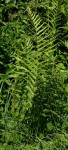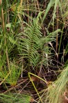 Rhizome widely creeping, up to 6 mm in diameter; rhizome scales sparse, black, narrowly ovate, entire, up to 1.5 mm long. Fronds spaced up to 12 cm apart, erect, not proliferous, herbaceous, in full sun texture stiff, leathery. Stipe up to 93 cm long, pale brown, glabrous to minutely hairy, with a few black scales at the base. Lamina up to 0.8 m long, ovate-lanceolate in outline, 2-pinnatifid, lower pinnae largest or of equal size as those above, only rarely very slightly reduced in size. Pinnae very narrowly oblong, shortly petiolate to sessile, base truncate, incised a third of the way to halfway to the costa; veins 7-15 pairs per lobe, basal pair of veins anastomosing well below the sinus, next pair meeting at the sinus; under surface hairless or set with white hairs, particularly along the costae, costules and veins, with or without pale brown scales on the costae, also sometimes distinct red glands below, upper surface hairless. Rhachis pale brown, hairless to thinly covered with short hairs. Sori round, up to 18 per lobe, typically forming a zigzag pattern along each side of the costa; indusiate small, hairy, often shed early. |