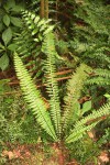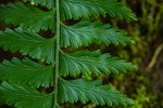 Rhizome up to 5 mm diameter, erect; scales brown with pale margings, narrowly ovate-triangular, up to 2 mm long. Fronds tufted, arching, herbaceous, proliferous towards the apex. Stipe up to 18 cm; stipe and rhachis are thinly pubescent and covered with few ovate brown scales. Lamina up to 95 cm × 12 cm, narrowly lanceolate in outline, 2-pinnatifid. Pinnae incised 2/3 of the way to the midrib, acroscopic basal lobe well developed, lanceolate, thinly pubescent above and below. Sori up to 5 mm long, linear, set at about 15 degrees to the midrib, indusium entire. |