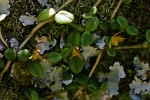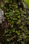 A small epiphyte. The widely creeping, prostrate, stems like pseudobulbs can form extensive mats, sometimes covering entire trunks and branches of the host trees. Leaves 2 per pseudobulb, suborbicular. Flowers solitary yellow with darker brown-yellow stripes. |