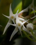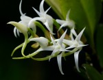 Epiphytic or lithophytic herb. Plants with a robust stem, up to 30 long, often forming large clumps. Leaves, leathery or somewhat fleshy, more or less flat and not folded along the length, linear, oblong or elliptic, up to 20 × 2.5 cm. Inflorescences 8-18 cm long, c. 10-flowered. Flowers star-shaped, sweetly scented, 2.5-3 cm in diameter, white, turning apricot with age. Sepals, petals and lip similar, lanceolate, acuminate, recurved at the apex. Spur 3-6 cm long, greenish, curved.
