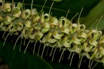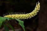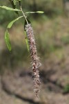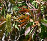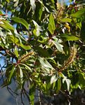 Small to medium-sized tree with a straight trunk and somewhat drooping foliage. Leaves narrowly oblong or elliptic, grey-green with a wavy, entire margin. Young leaves pinkish brown. Flowers in slender spikes, pale yellow, turning silvery hairy when fruiting. |