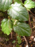 Robust woody liane. Leaves more or less broadly ovate to ovate-oblong, 3-5-veined from the base, dark green, hairless or very sparely hairy below; apex tapering to rounded or acuminate with a distinct drip tip; margin entire; petiole with a swelling and a bend below the blade. Flowers in clusters on the old stems, unisexual on different plants, white, c. 2.5 mm in diameter. Fruit obovoid to nearly spherical, c. 6 mm in diameter. |