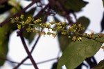 Shrub or small tree. Branchlets with conspicuous pale lenticels. Leaves trifoliolate; leaflets elliptic, up to 16 cm long, central leaflet longer than lateral ones, glossy dark green above, paler below, thinly leathery, hairless except for hairtuft domatia in the axils of the veins below; margin with shallow spaced teeth to subentire. Flowers in mostly unbranched racemes 10-24 cm long, whitish. Fruit almost round, fleshy, c. 6 mm in diameter, red when ripe. |