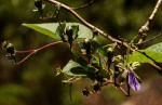 Shrub or small multi-stemmed tree. Leaves opposite or 3-4-whorled, usually crowded near the ends of branches, ovate to broadly elliptic, up to 9 × 5 cm, velvety above, often densely woolly and paler below; petiole obscured by the decurrent leaf base; margin coarsely toothed. Flowers in few-flowered terminal and axillary heads, showy, c. 2 cm in diameter, purple-blue and white with long exserted stamens. Fruit c. 10 mm in diameter, 2-4-lobed, surrounded by the spreading calyx lobes when young, red to black when ripe.