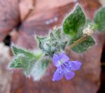 Decumbent to suberect perennial herb. Stems up to 35 cm long; most parts densely covered in soft spreading hairs. Leaves opposite elliptic; margin entire. Flowers in terminal cylindrical spikes, with ovate, glandular and hairy bracts. Corolla, 5-lobed, 2-lipped, mauve-blue, purplish or white. Capsule oblong, slightly beaked. |