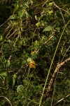 Trailing or twining annual or perennial herb with one to several stems, up to 3 m long, sparsely to densely white to yellow hairy, growing from a woody rootstock when perennial. Leaves opposite, triangular-ovate, 2.5-10.5 cm long,usually with hastate to rounded basal lobes, base running down into broad wings on the petiole; margin entire or coarsely toothed. Flowers axillary, solitary or in pairs. Corolla 5-lobed pale yellow to deep orange with a deep purple to almost black throat; lobes broadly emarginate; tube 3-6 mm long, straight or curved. |