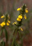 Erect, branched perennial herb, up to c. 80 cm tall. Leaves opposite, lower leaves more or less broadly ovate, often more narrowly lanceolate-elliptic higher on the stems, mostly hairless above, thinly hairy below. Flowers in terminal spikes, yellow, held in overlapping green bracts covered in long spreading hairs. |