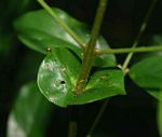 Shrub or small tree. Bark grey to pale brown; branches opposite above the leaf axils with a distinct round or heart-shaped leaf below the joint of the branches. Leaves opposite, elliptic to obovate, up to 12 × 5 cm, dark glossy green, hairless above, variously hairy or hairless below. Flowers in opposite axillary clusters, c. 1 cm in diameter, white with a green style. Fruit ellipsoid, up to 1.5 cm long, hairless or hairy, red when ripe, crowned with the persistent calyx. |