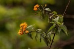 Climbing shrub, often scrambling over other vegetation, to 8 m. Leaves: petiole to c. 2 cm; lamina 2.5-12 × 1.5-10 cm, broadly ovate to lanceolate, sparsely puberulent above, whitish-tomentellous beneath, strongly 3-nerved from base; base cuneate; apex ± long-acuminate; margin entire to remotely serrate. Capitula numerous, in dense ± spherical clusters. Involucre 4-7 × 3-6 mm. Phyllaries numerous, mealy-hairy outside with a mucronate apex and ciliate margin. Corolla 7-10 mm, orange-yellow. Achenes 1.2-2.5 mm, narrowly obovoid-cylindric, somewhat angular or faintly ribbed. Pappus with an outer whorl of short linear setae and an inner of barbellate setae 4-6.5 mm. |