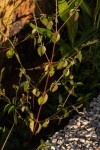 Stout perennial herb. Leaves oblong-elliptic, pointed at the apex, variably hairless or hairy but not appressed silvery hairy beneath. Inflorescences up to 35 cm long; , greenish to purple-red.Erect perennial, sometimes climbing or scrambling. Leaves oblong-elliptic, pointed at the apex, variably hairless or hairy, in some varieties silvery hairy beneath or when young. Inflorescences dense at first but elongating up to 35 cm long with more widely spaced flowers. Flowers with perianth segments up to 7 mm long, greenish to silvey-white, often tinged with purple-red. |